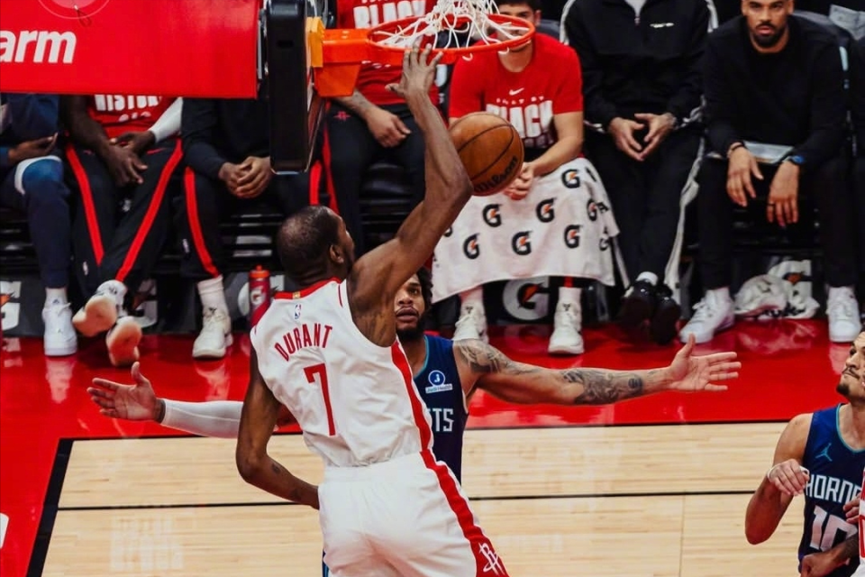 加上全队投射表现又不佳,火箭队在进攻端自然极度便秘,几乎只能依靠杜兰特强解破局。