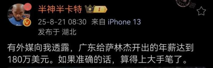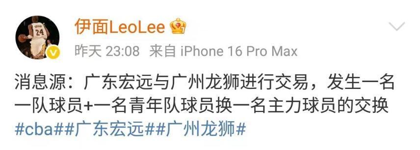 广东男篮最近的补强消息比较多:在外援方面,据媒体人“半神半卡特”透露,广东男篮给大外援萨林杰的报价是180万美元,这个年薪在大外援里已经属于非常高了,萨林杰大概率会加盟球队效力;在国内球员方面,据媒体人“伊面LeoLee”透露,广东男篮已经和广州男篮达成交易意向,用“2换1”的方式得到了广州男篮的一名主力。随后有消息称,这笔交易是这样的,广东男篮用黄明依和夏振峰交易到了国手内线焦伯乔,这件事只差最后的官宣了。